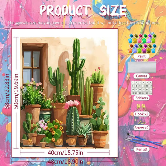 DIY Digital Oil Painting Cactus Plant Paint By Number